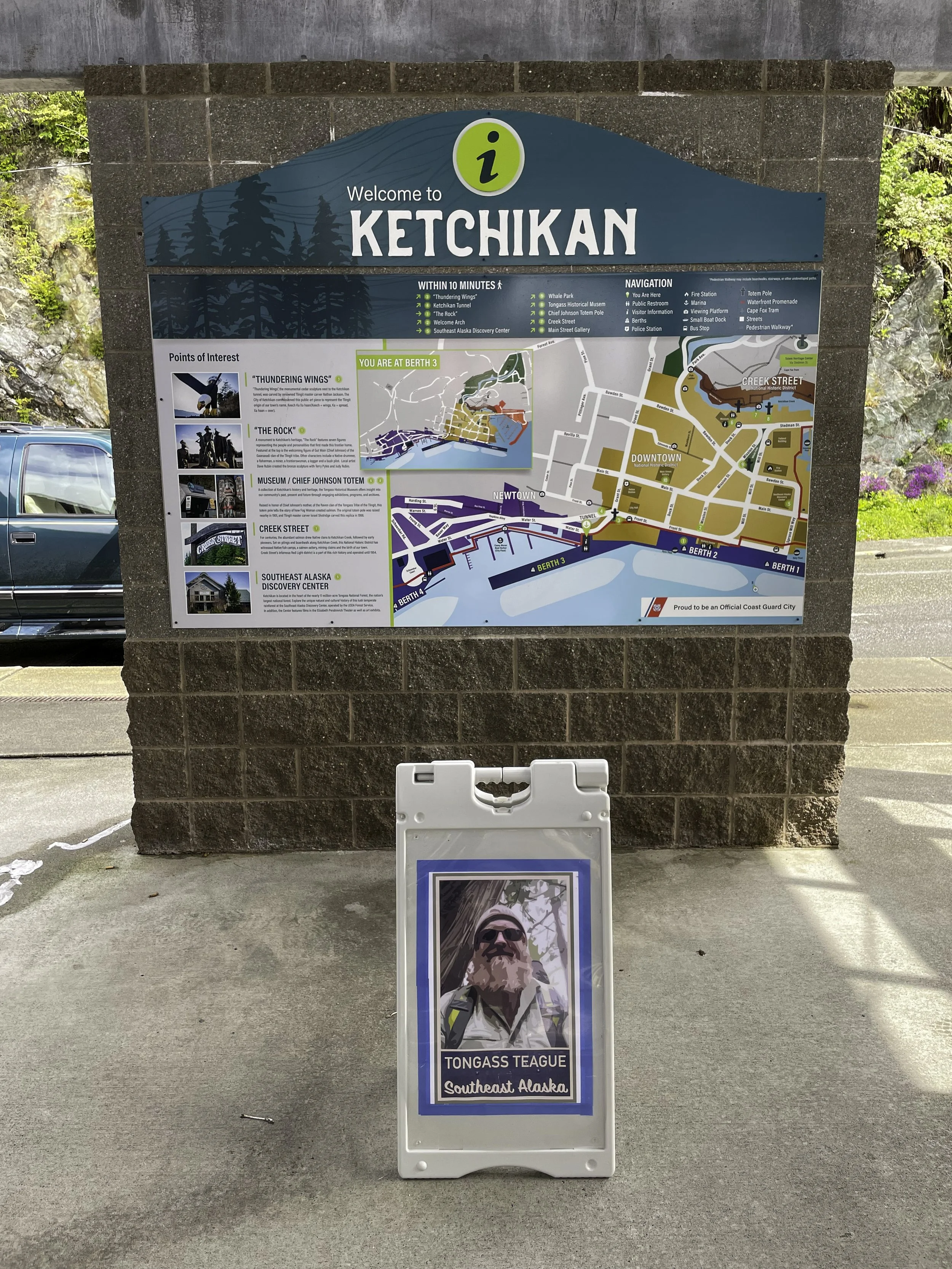 CRUISE PASSENGERS: MEET DOWNTOWN KETCHIKAN INSIDE THE BERTH 3 GLASS SHELTER BY THE CITY MAP that butts up to Tongass Avenue. RIGHT NEXT TO SOCKEYE SAM'S @ 425 Water St, Ketchikan, AK 99901.