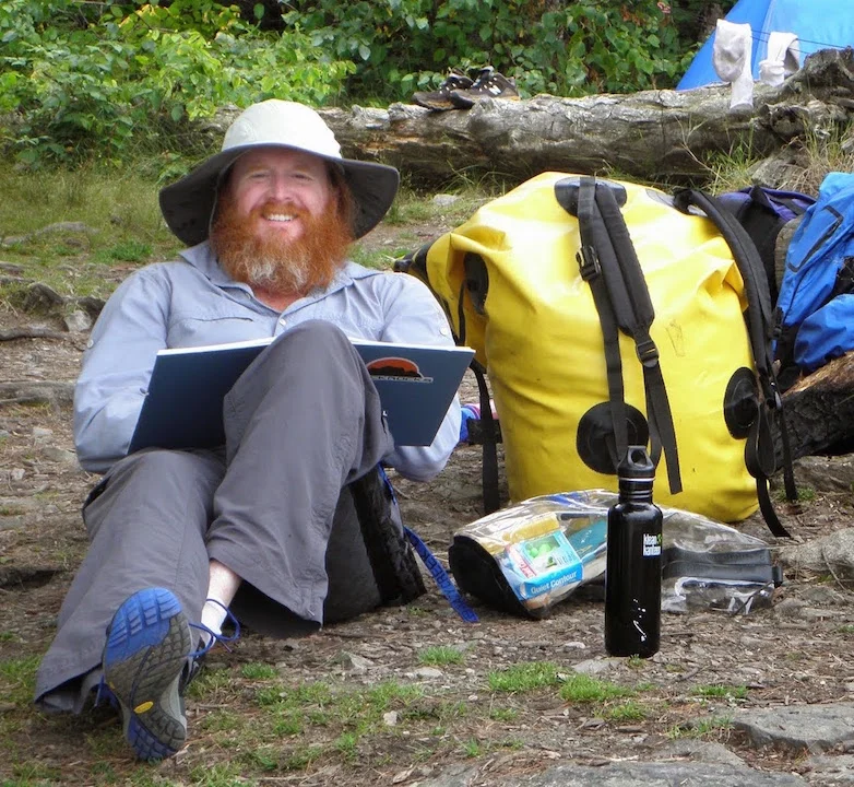 Teague in Minnesota's Boundary Waters Canoe Area, August 2014, at the beginning of his semester sabbatical to write his first draft of Caught Between The Mountain And The Sky.